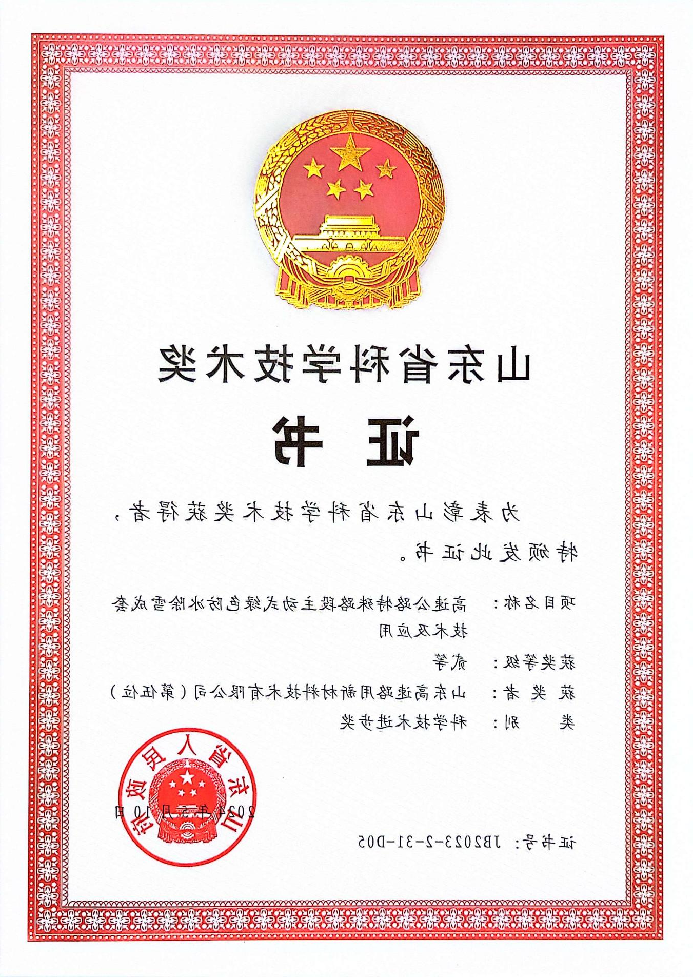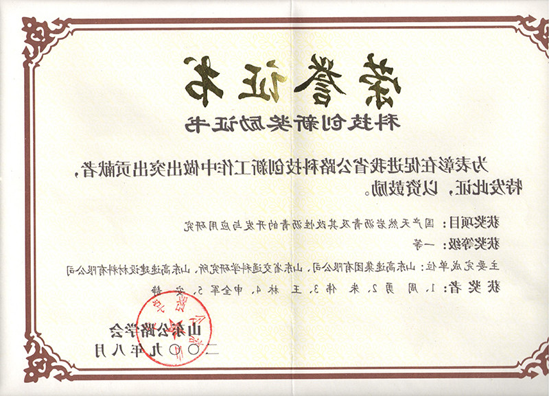 · 获得山东省科技进步奖、中国公路学会科学技术奖、山东公路学会科学创新奖、交通科学技术奖等政府、行业奖项共10项