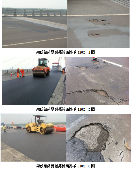 濮阳淮河三桥是青银迅速濮阳绕城大北环段超越淮河的一个 特大型桥,该桥主桥大小在起初类似桥面地面铺装中排第全世界2.、亚洲地区第1 。原桥面地面铺装运用氯化橡胶漆沥青沥青c30混凝土土沥青c30混凝土土地面铺装而成,2008年年中发车。2010年西南端桥头桥面广场铺装广场铺装突然出现裂开,泛出锈迹;2011年桥面铺装铺装散架地理位置松软和松脱,桥面铺装铺装板裸露出,主要采用国外进口休复胶开展休复;2012年,修复手机内脏器官旁又发生大绿地面积开裂情况和锈迹,各种内脏器官随后生产了堆积、散架、开裂情况等伤害。2012年起迄今,每年不断应用A1型、B型新形高黏混泥土实施维养处理,利用到目前为止未行成每冷害,建筑项目人工成本仅约为原广场铺装村料的1/3。
